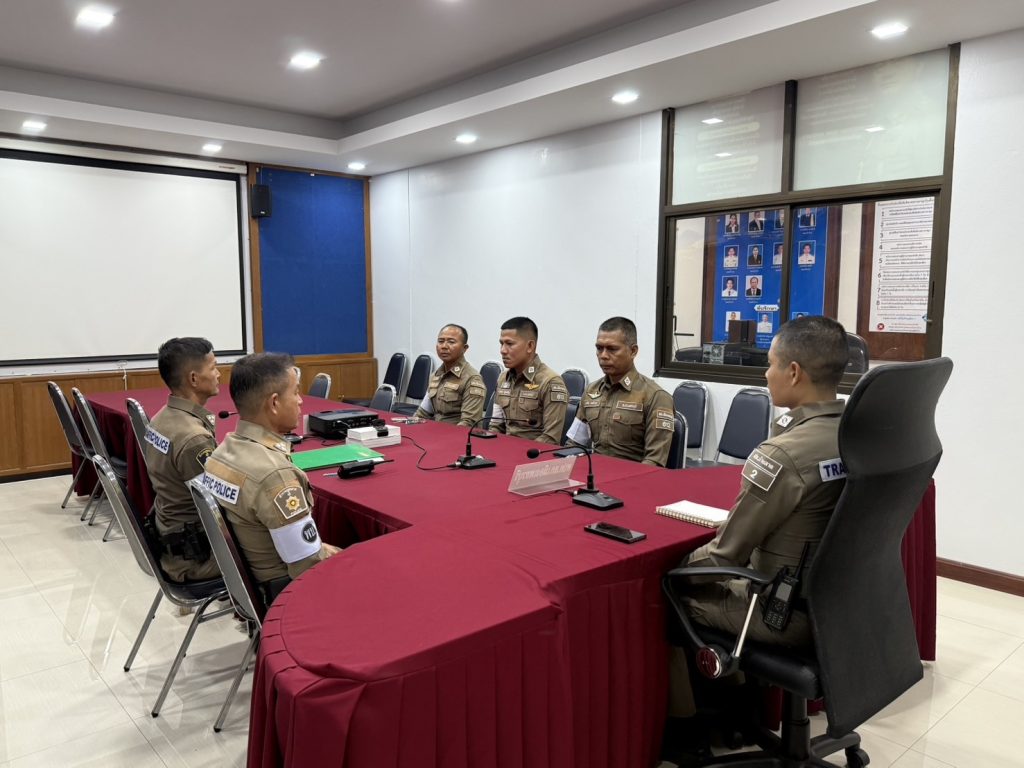 พ.ต.ท.ชาญยุทธ พวงสั้น รอง ผกก.ป.สภ.บ้านลาด (รรท.รอง ผกก.จร.สภ.เมืองเพชรบุรี) ประชุมเจ้าหน้าที่ตำรวจจราจร สภ.เมืองเพชรบุรี กรณีการจัดงานพระนครคีรี ครั้งที่38