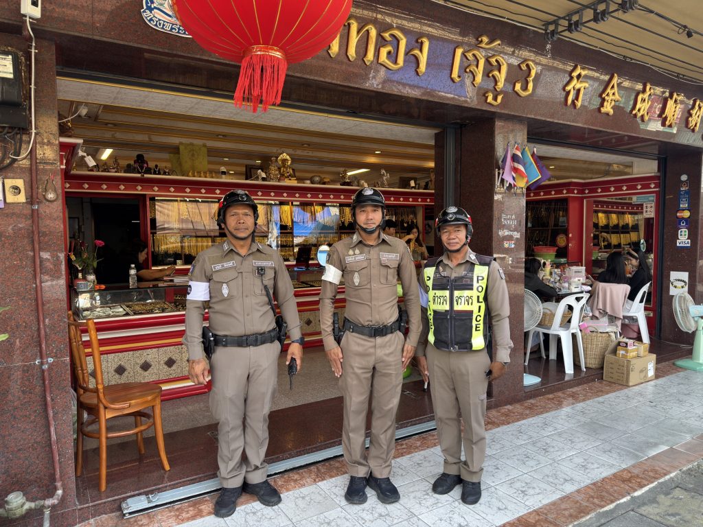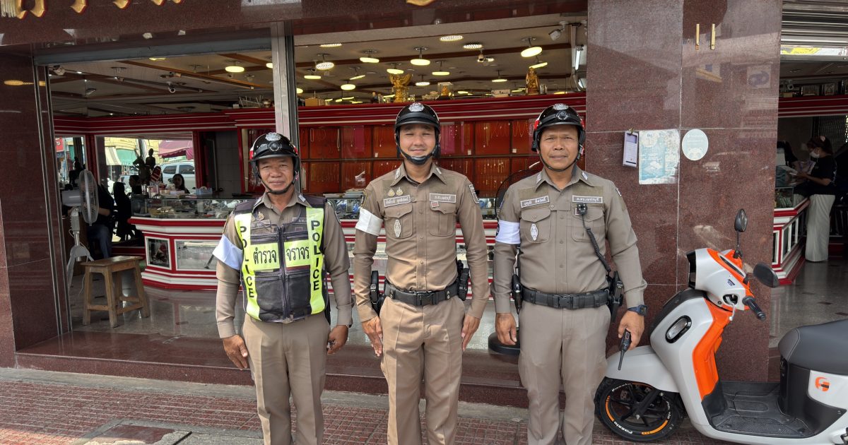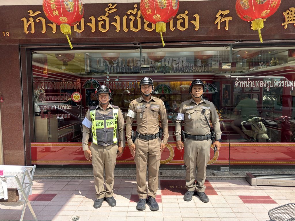 พ.ต.ท.ศักดิ์ระพี พูลพิพัฒน์ สว.จร.สภ.เมืองเพชรบุรี ร.ต.อ.บุญมี ศรีสวัสดิ์ รอง สว.จร.สภ.เมืองเพชรบุรี ว.4 ตรวจร้านค้าทองในเขตพื้นที่รับผิดชอบ