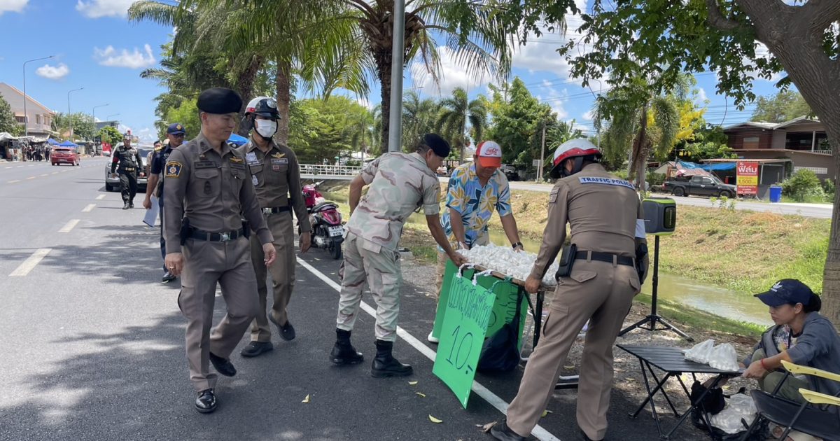 เดินเท้าประชาสัมพันธ์รณรงค์ห้ามจำหน่ายเครื่องดื่มที่มีแอลกอฮอล์ตามที่กฎหมายกำหนดและห้ามจำหน่ายให้ผู้ที่มีอายุต่ำกว่า20ปีและจัดระเบียบพื้นผิวการจราจรให้เป็นไปด้วยความเรียบร้อยในช่วงเทศกาลสงกรานต์