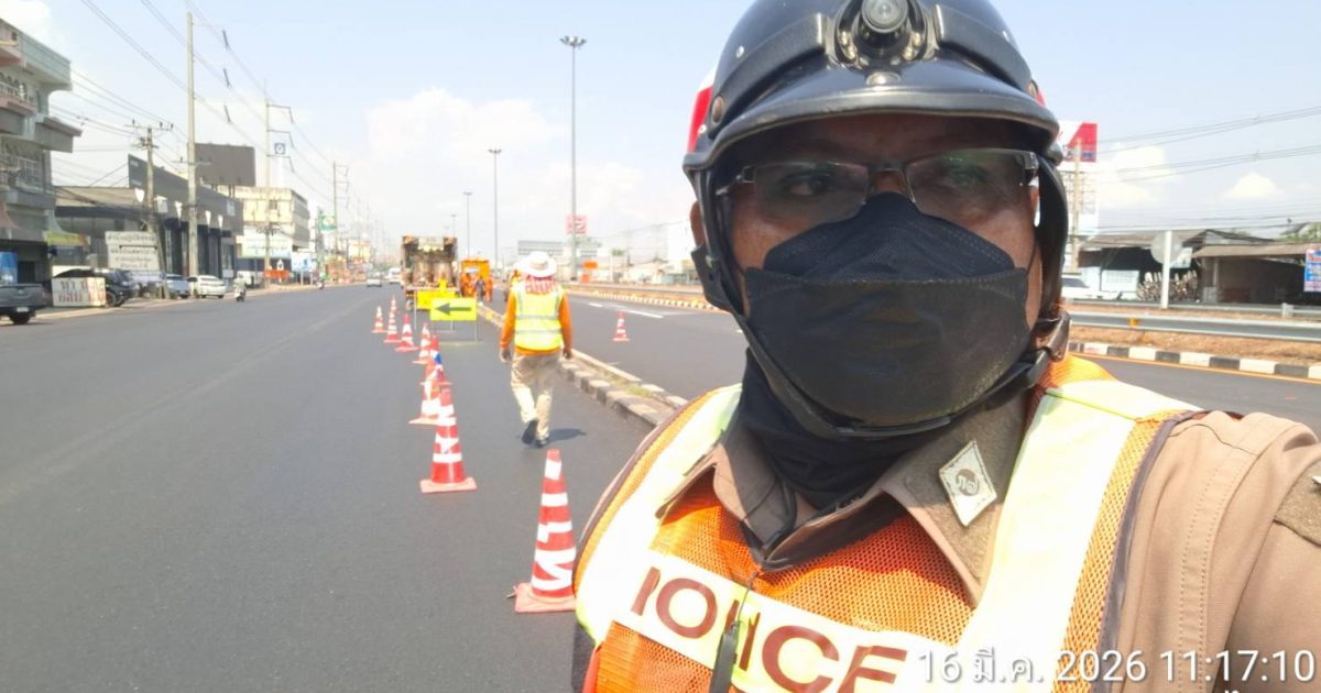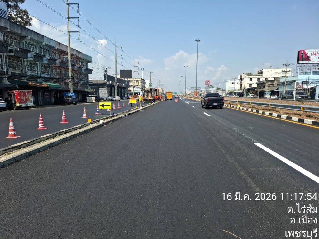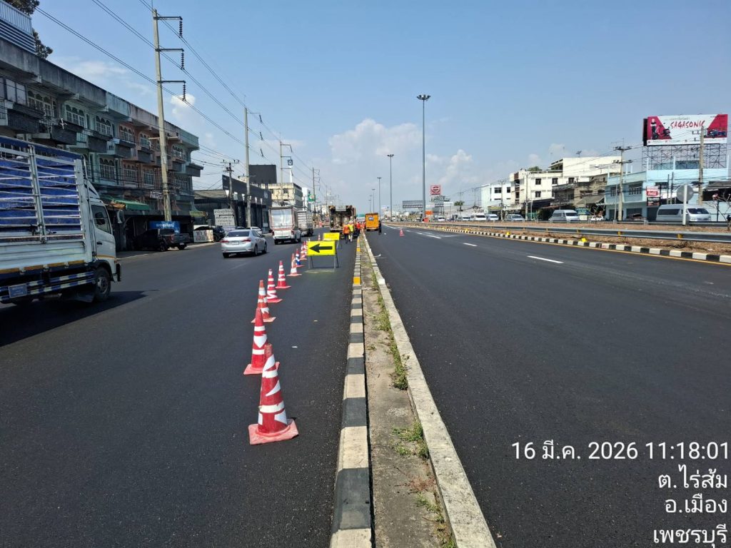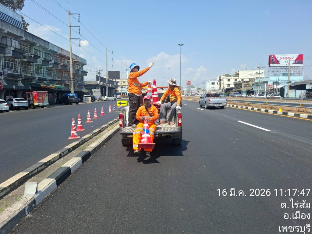 วันที่ 16 มี.ค 2569 เวลา11.15น ด.ต.ยงยุทธ เอี่ยมละออง ผบ.หมู่(จร)สภ.เมืองเพชรบุรี (มพ.6607) ว.4 ตรวจสอบการตีเส้นจราจรถนนเพชรเกษมตั้งแต่ต่างระดับออกนอกเมือง-สะพานลอยไร่ส้ม ขาเข้ากทม การจราจรคล่องตัว