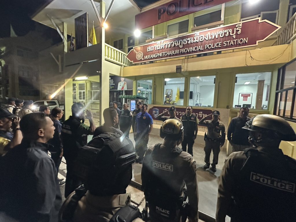 สภ.เมืองเพชรบุรี วันที่ 12 มี.ค. 2568 เวลา 21.00 น. 🔶นายกองโท สมศักดิ์ แย้มพันธุ์นุ้ย นายอำเภอเมืองเพชรบุรี 🔶พ.ต.อ.โชคชัย เนียลเซ็น ผกก.สภ.เมืองเพชรบุรี (มพ 1) ร่วมปล่อยแถว หน้าสถานีตำรวจภูธรจังหวัดเพชรบุรี เพื่อตรวจสถานบริการในพื้นที่ และทดสอบสารเสพติดของพนักงานในสถานบริการ