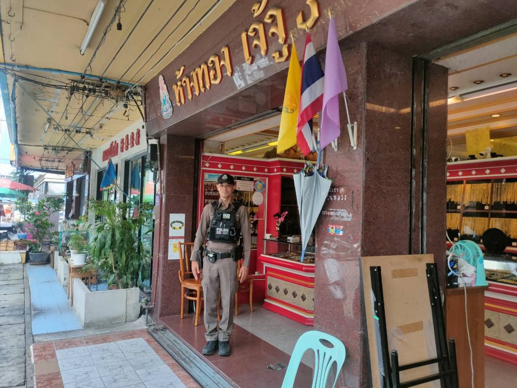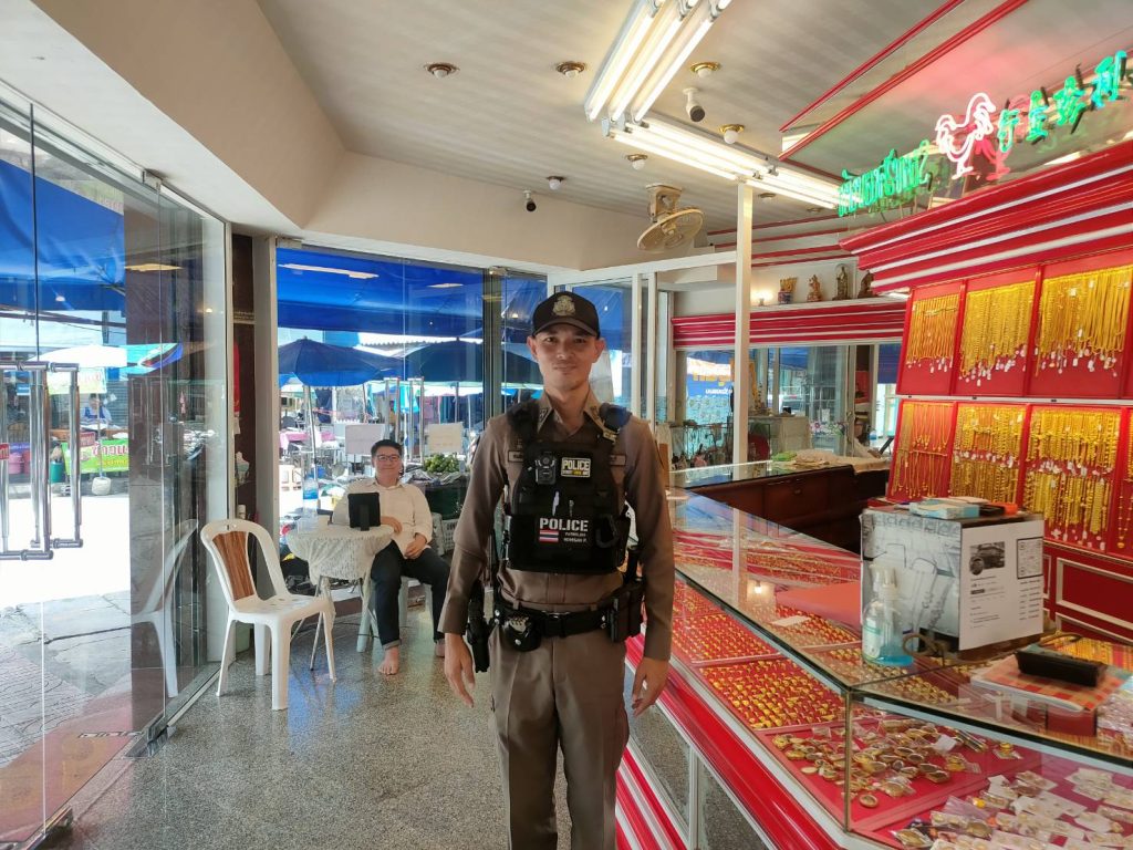 สภ.เมืองเพชรบุรี วันนี้( 17 พ.ค. 67) เวลา 14.20 น. ร.ต.อ.คมสันต์ พุ่มเงิน รอง สวป.สภ.เมืองเพชรบุรี จ.ส.ต.พิศรุฒ ทองไสว ผบ.หมู่ ป. สภ.เมืองเพชรบุรี เมืองเพชร204 ว.4 ตรวจป้องกันเหตุ ร้านค้าทอง ถนน18เมตร เหตุการณ์ปกติ