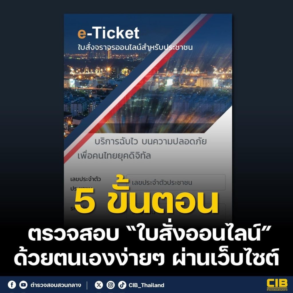 เพื่อความสะดวกสำหรับประชาชนผู้ขับขี่รถ สามารถตรวจสอบการค้างชำระค่าปรับ พร้อมจ่ายค่าปรับได้ทันทีผ่านเว็บไซต์ https://ptm.police.go.th/eTicket/#/ โดยตรวจสอบใบสั่งจราจรออนไลน์ได้ด้วยตัวเองตามขั้นตอน ดังต่อไปนี้