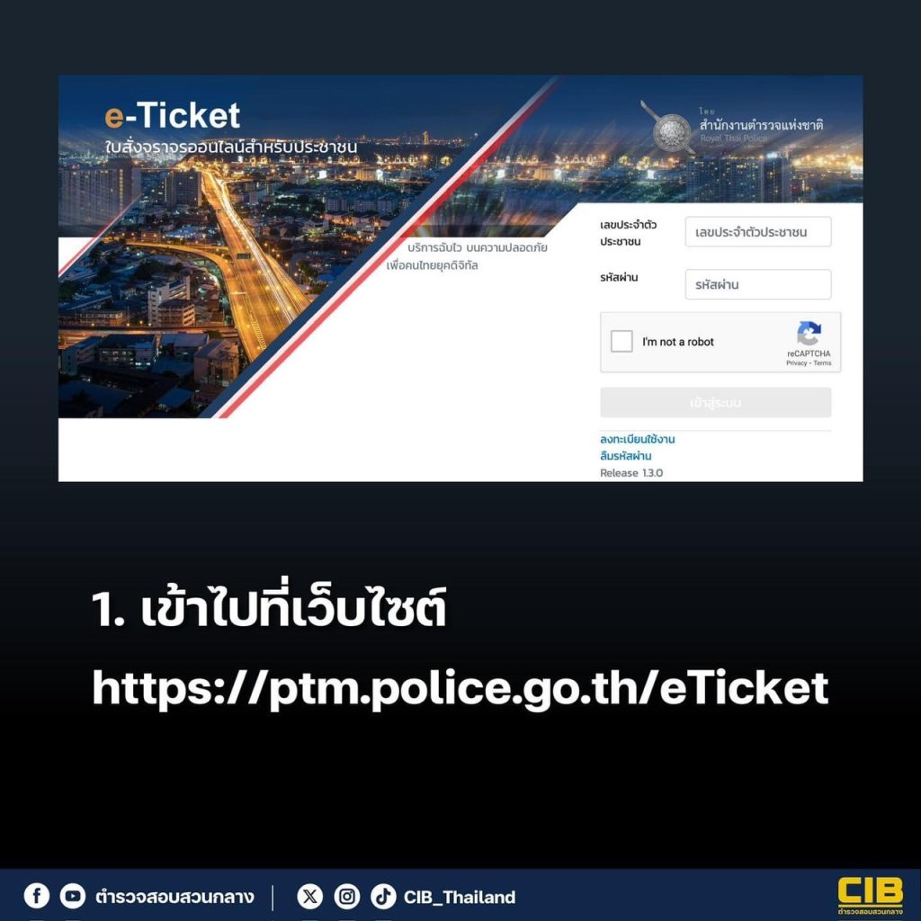 1. เข้าเว็บไซต์ https://ptm.police.go.th/eTicket