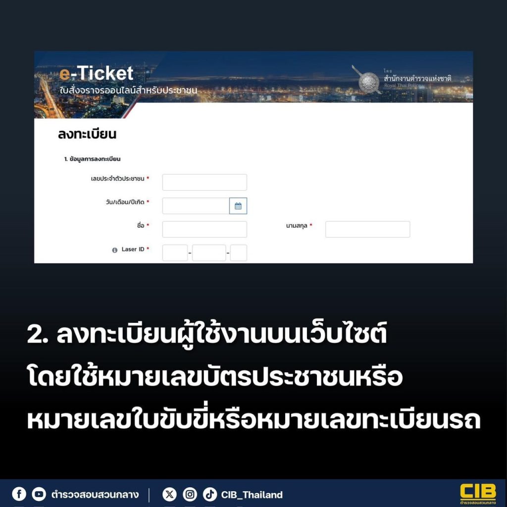 2. ลงทะเบียนผู้ใช้งานบนเว็บไซต์ โดยใช้หมายเลขบัตรประชาชน / หมายเลขใบขับขี่หรือหมายเลขทะเบียนรถ