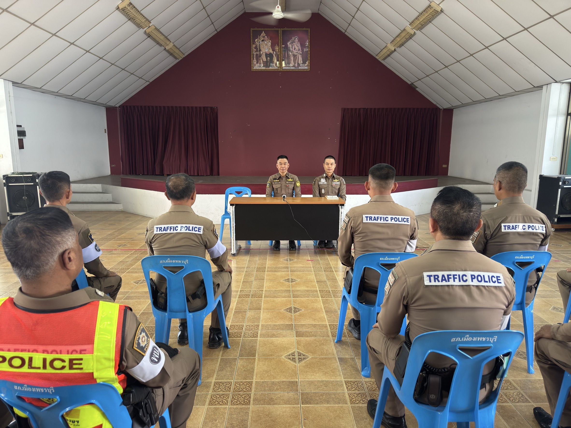 พ.ต.ท.ชาญยุทธ พวงสั้น รอง ผกก.ป.สภ.บ้านลาด (รรท.รอง ผกก.จร.สภ.เมืองเพชรบุรี) ประชุมเจ้าหน้าที่ตำรวจจราจร สภ.เมืองเพชรบุรี กรณีการจัดงานพระนครคีรี ครั้งที่38