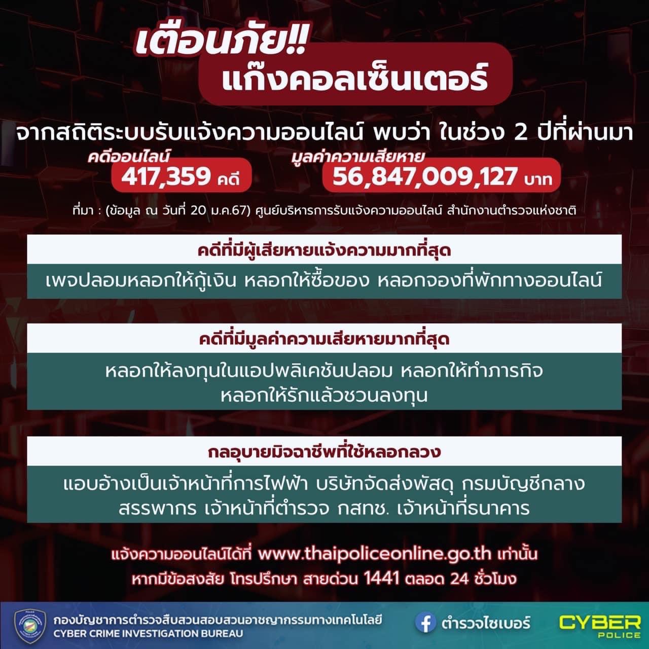 🚨เตือนภัยแก๊งคอลเซ็นเตอร์.ในช่วง 2 ปีที่ผ่านมา ข้อมูลจากศูนย์บริหารการรับแจ้งความออนไลน์ สำนักงานตำร