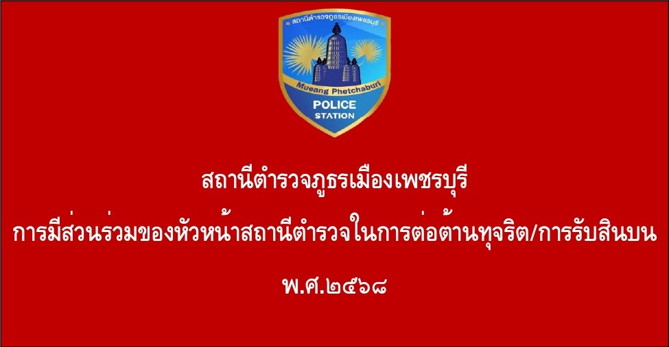 ผกก.เมืองเพชรบุรี จัดประชุมอบรมเสริมสร้างคุณธรรมและความโปร่งใสในการต่อต้านการทุจริตและการต่อต้านการรับสินบนในหน่วยงาน