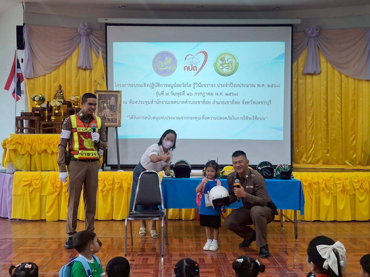 วันนี้ 16 ก.ค. 2568 เวลา 09.30 น. พ.ต.ต.กดชา บรรเทิงจิต สวป.(ชส)สภ.เมืองเพชรบุรี ว.4 วิทยากรโครงการ อบรมปฏิบัติการหนูน้อยวัยใส รู้วินัยจราจร รุ่นที่ 7 ณ ห้องประชุม สำนักงาน เทศบาลตำบลเขาย้อย อำเภอเขาย้อยจังหวัดเพชรบุรี