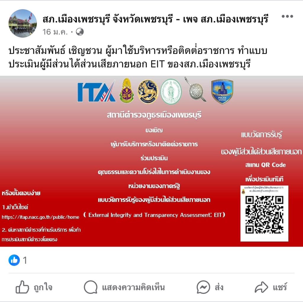ประชาสัมพันธ์ข้อมูลผลการดำเนินงานของสถานีตำรวจภูธรเมืองเพชรบุรี