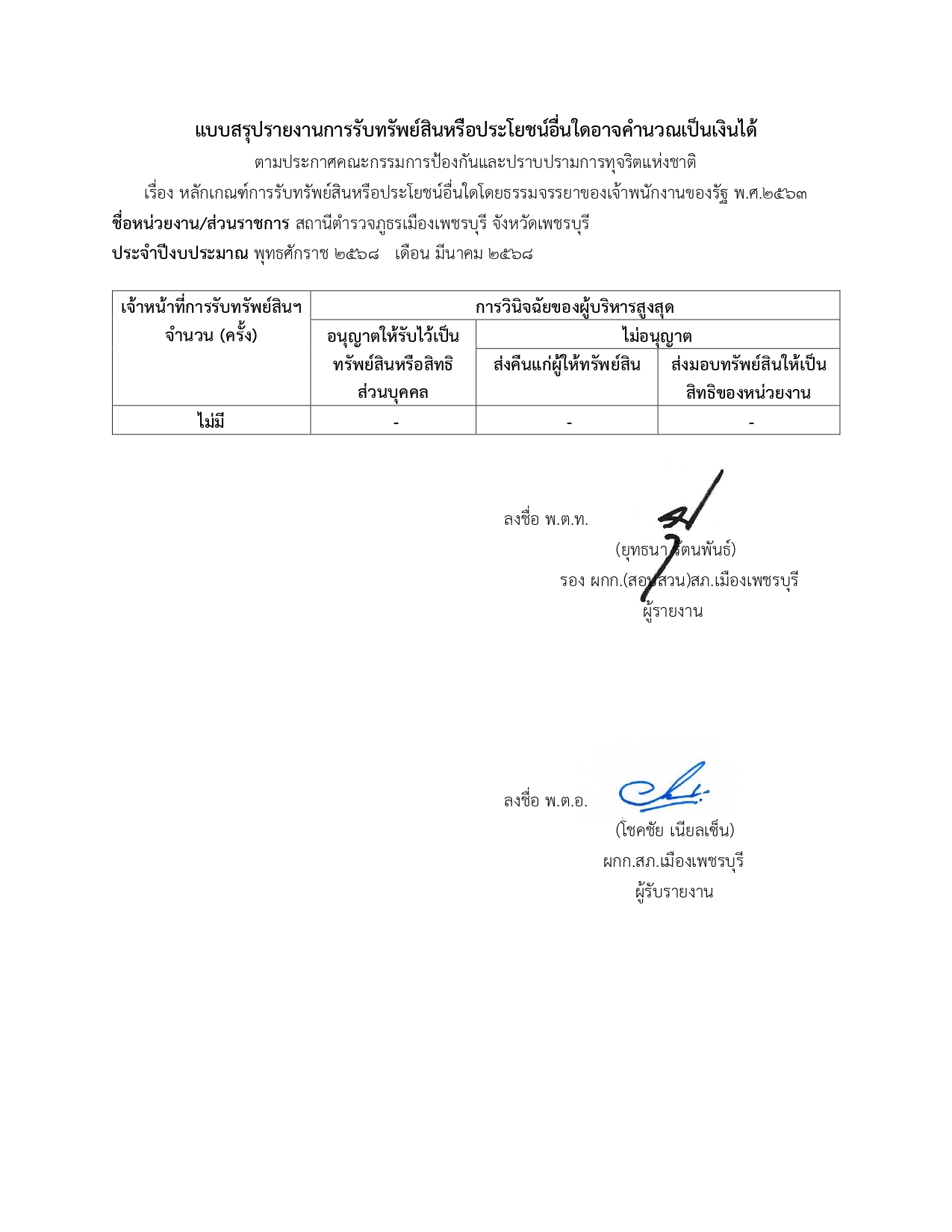 คำสั่งสถานีตำรวจภูธรเมืองเพชรบุรี ที่ 95/2568 เรื่องมอบหมายเจ้าหน้าที่เก็บยรักษากุญแจ และสถานที่เก็บรักษาอาวุธปืนกระสุนปืนคงคลัง ทางราชการ