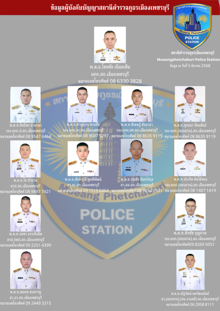 ข้อมูลผู้บังคับบัญชาสถานนีตำรวจภูธรเมืองเพชรบุรี